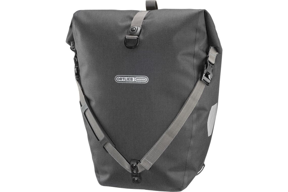 Der Back-Roller Urban von ORTLIEB ist eine wasserdichte, geräumige Tasche aus einem Cordura-Baumwoll-Mix, ideal für den Arbeits-, Uni- oder Schulweg. Mit dem Quick-Lock2.1-System lässt sich die Tasche schnell und einfach am Gepäckträger befestigen. Sie verfügt über verstellbare Haken (8–16 mm), eine stabile Hakenschiene und eine Innentasche für Ordnung. Der Schultergurt ermöglicht den Transport als Umhängetasche, während zwei Reflektoren die Sichtbarkeit im Straßenverkehr erhöhen.